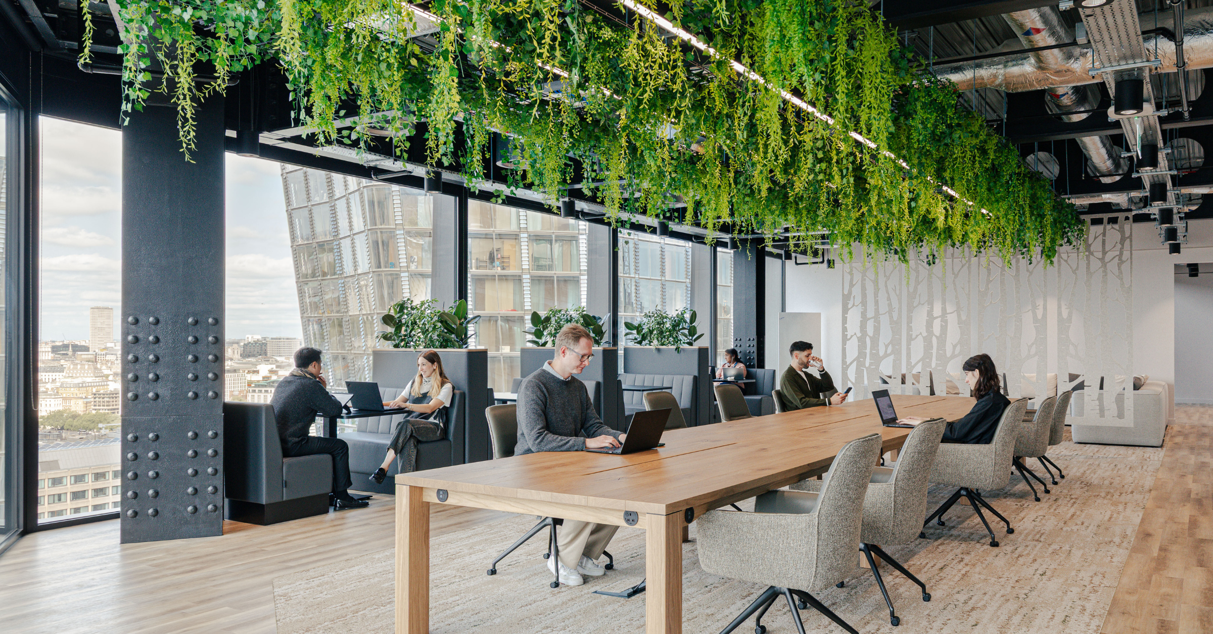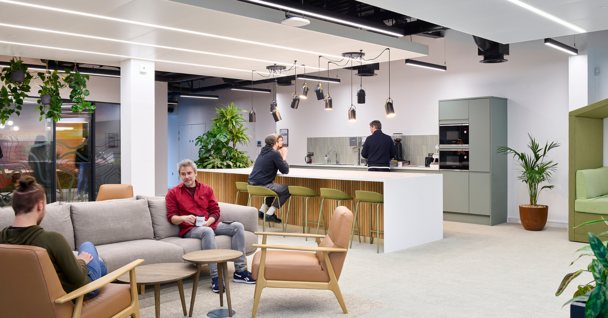 Modern workplaces should be inviting, filled with greenery and calming colours to support people and make them feel at ease in work, breakout zones with lush greenery are key for teamwork, and social spaces should encourage connection. Natural light, carefully curated ergonomic design and thoughtful layouts all contribute to environments that people want to be, not where they have to be.