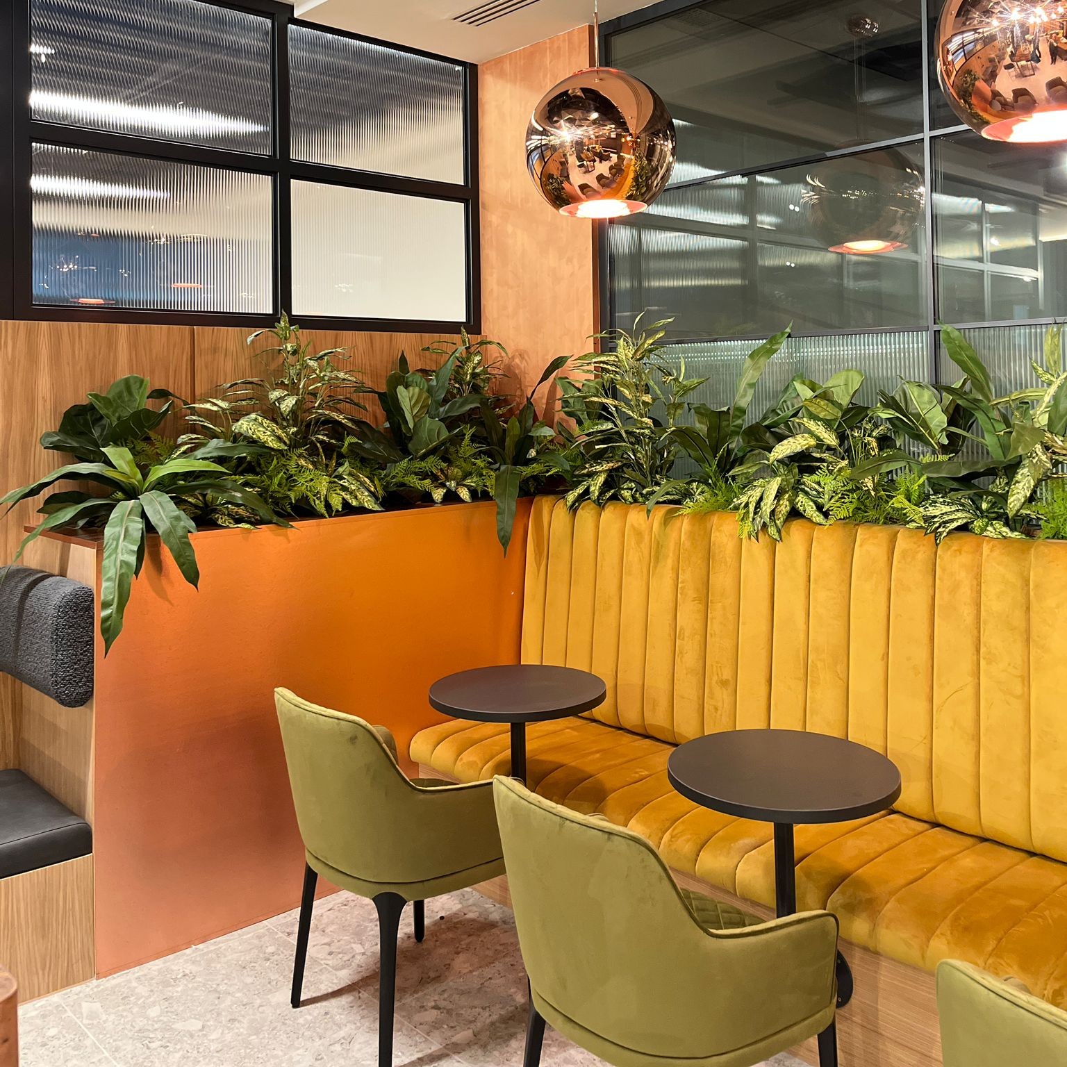 We brought the hidden terrace at The Exchange to life with towering tropical plants, seamlessly integrated into the bench seating