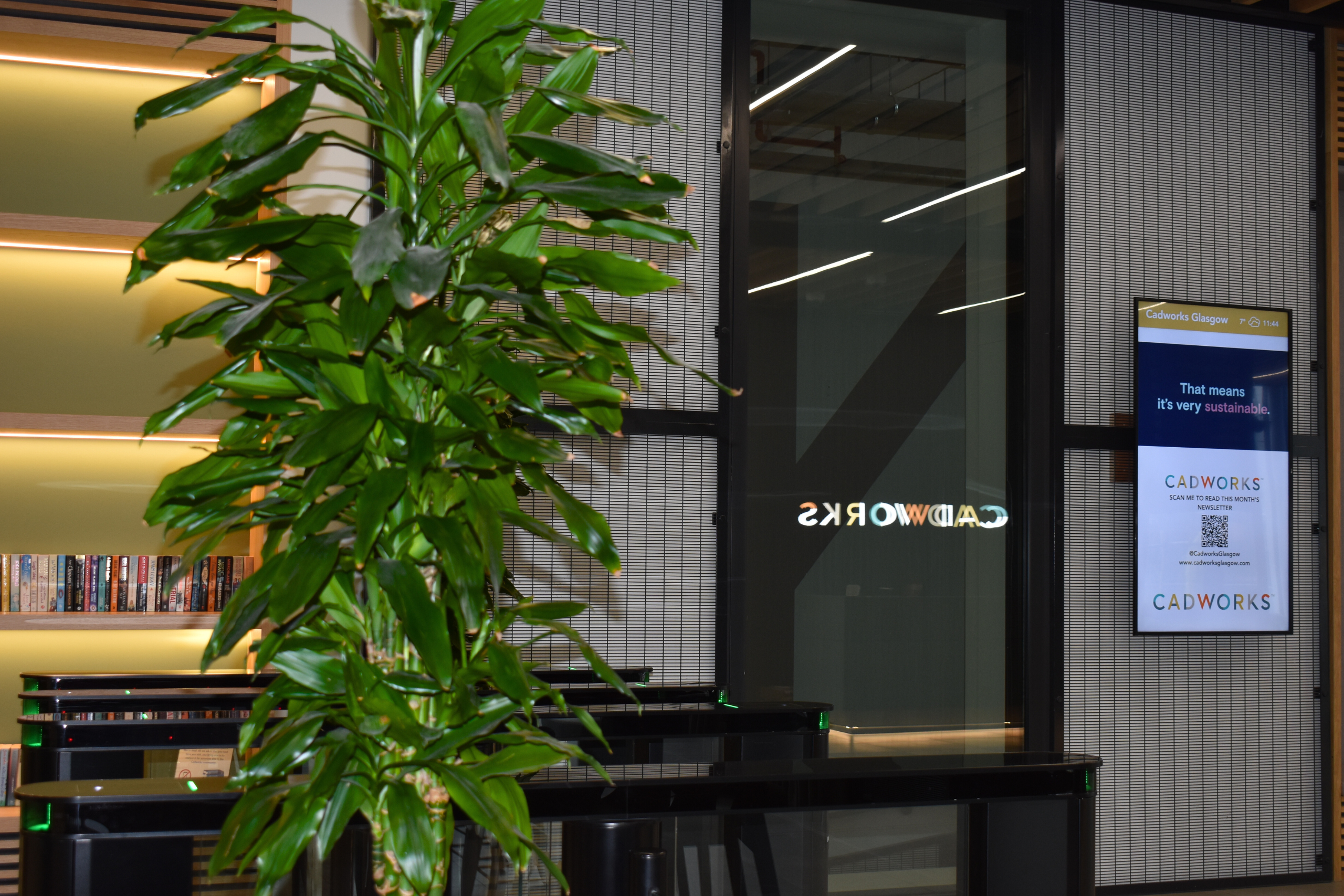 Cadworks wanted to make some changes and decided to create a seating area, this involved removing some of the living wall. As one of Glasgow’s first net-zero in operation building, we decided to uphold our commitment to sustainability by rehoming these plants so there was little waste.