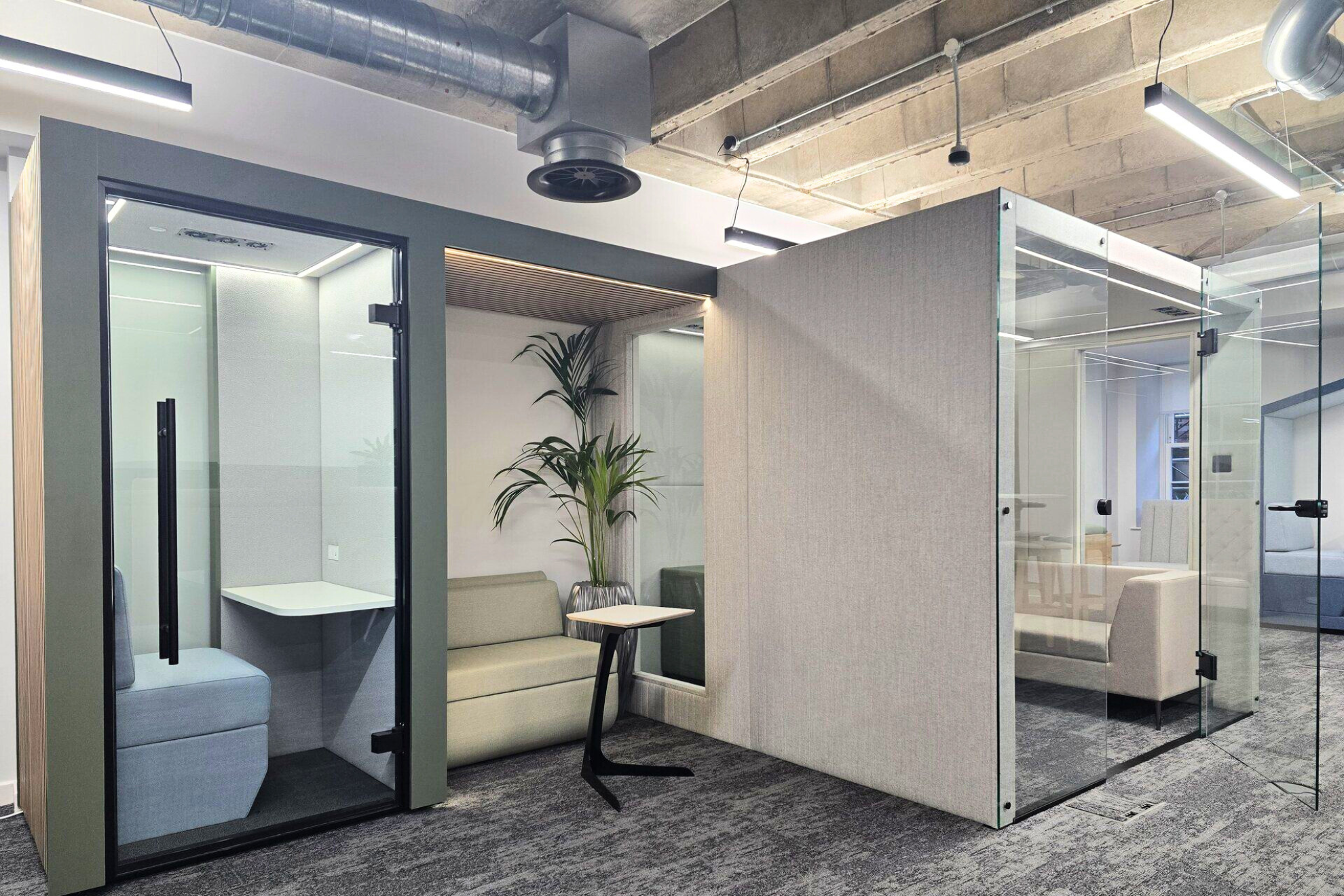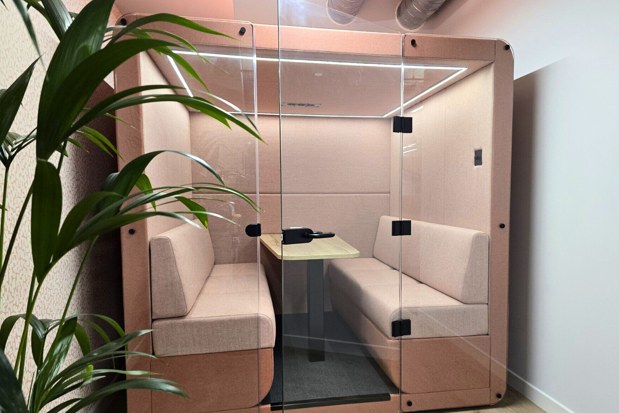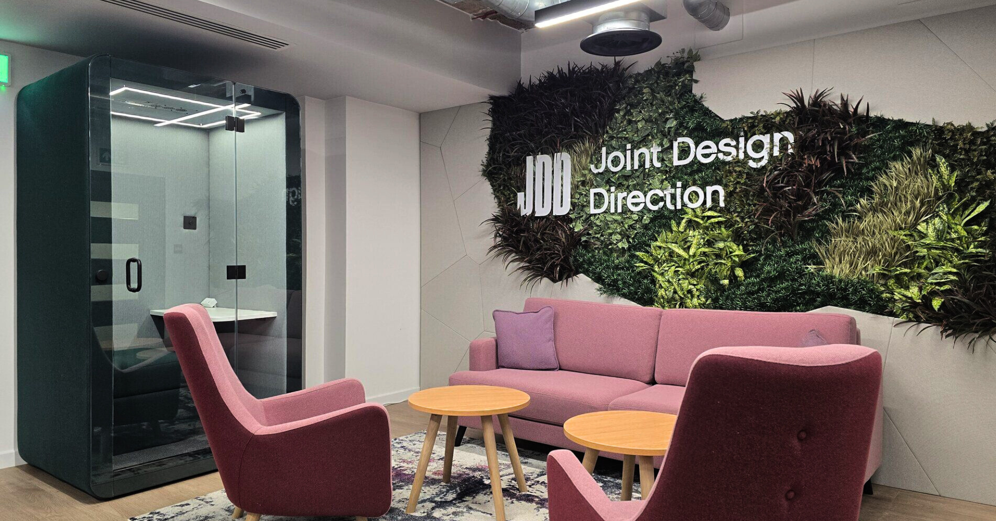 The objective was to create a space that seamlessly integrates JDD’s bespoke furniture with natural elements, reinforcing their ethos of bringing warmth and creativity into the workplace. Benholm aimed to soften the showroom with biophilic design and complement their furniture collections, particularly their pods and seating solutions.