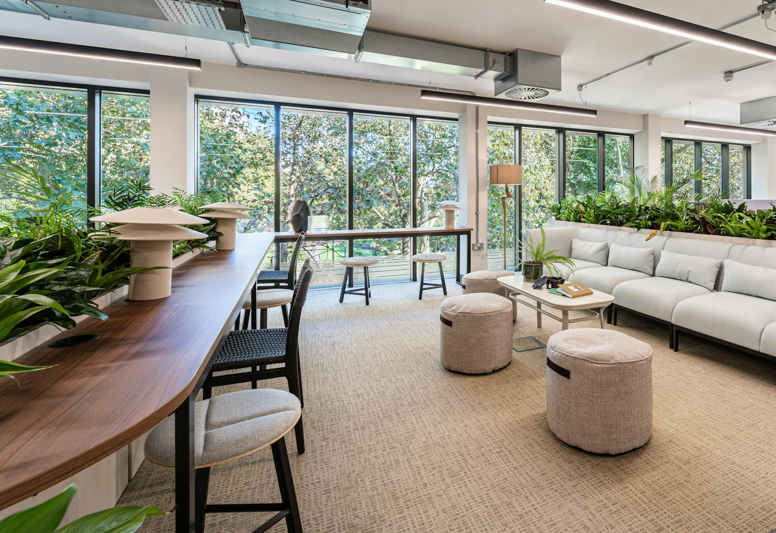 The exterior planting was designed to enhance this setting, softening the architecture and strengthening the connection between the workplace and its wider environment.