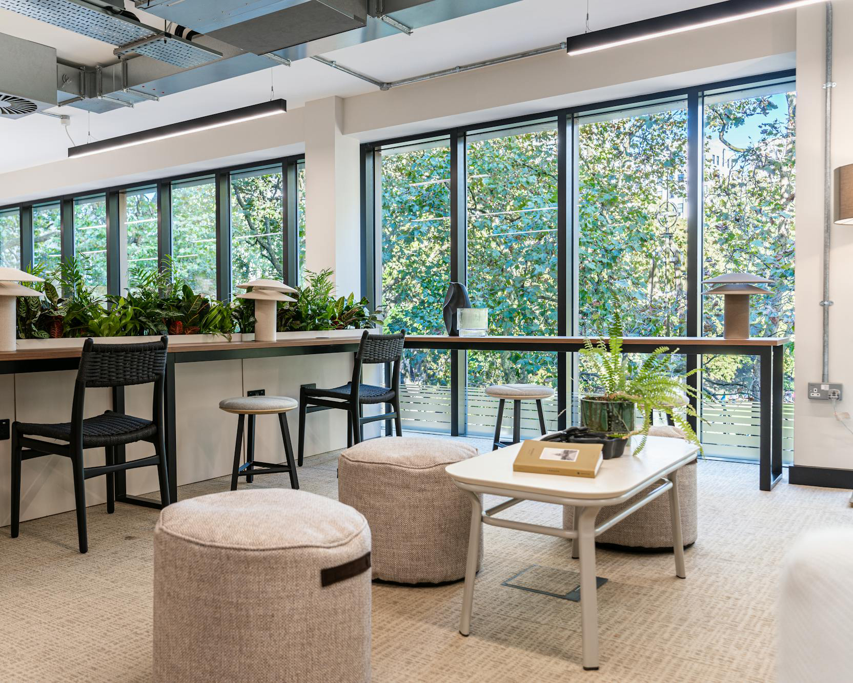 Located just moments from Embankment Station, the 3rd floor at Verve sits amongst the mature tree canopy of Victoria Embankment Gardens. The refurbishment embraced this natural setting, using greenery, texture and natural tones to create an open, welcoming environment designed for hybrid working.