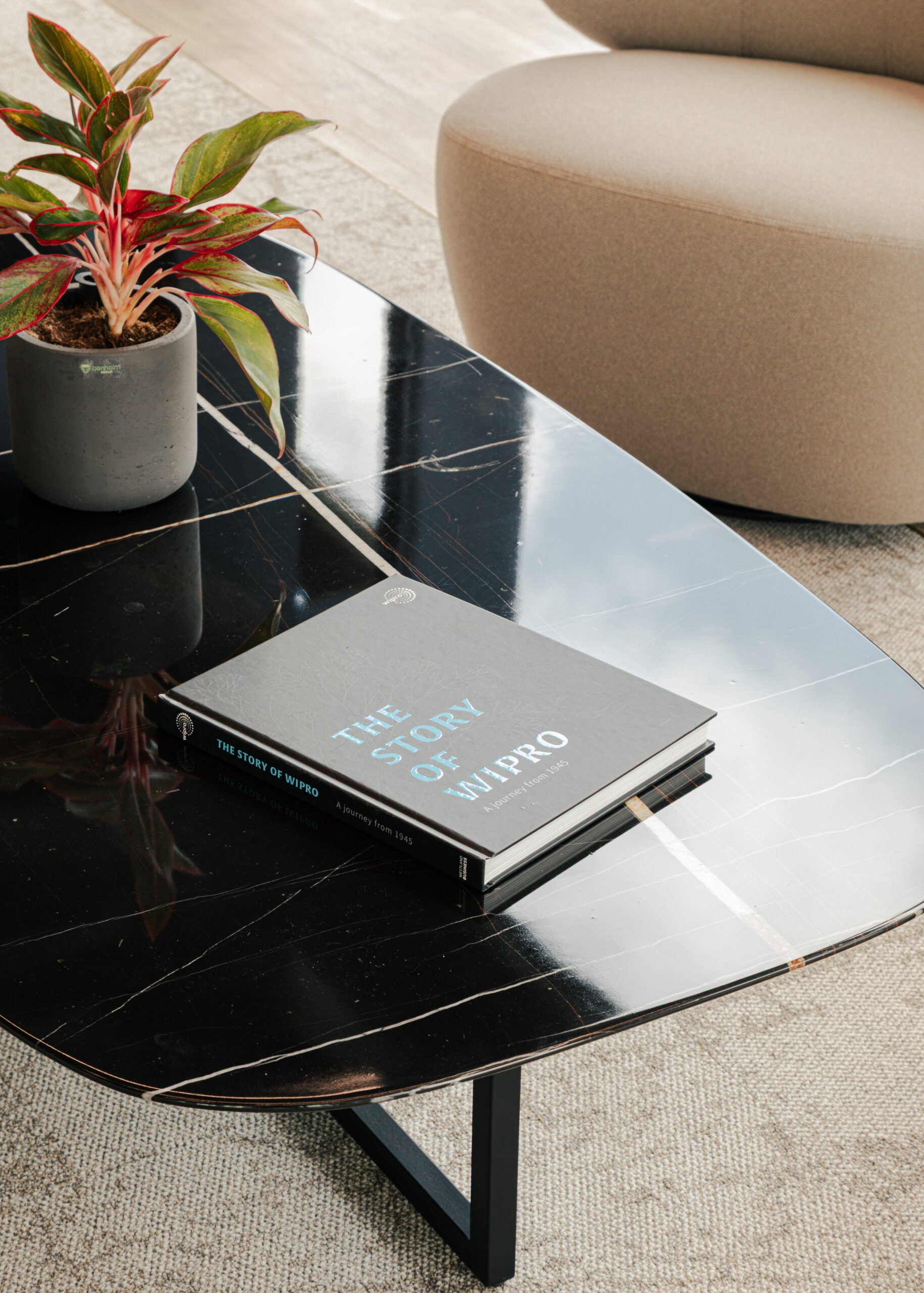 Planting was treated with the same level of intent as the furniture and finishes — a natural layer of hospitality that makes the workplace polished, human and unmistakably Wipro.