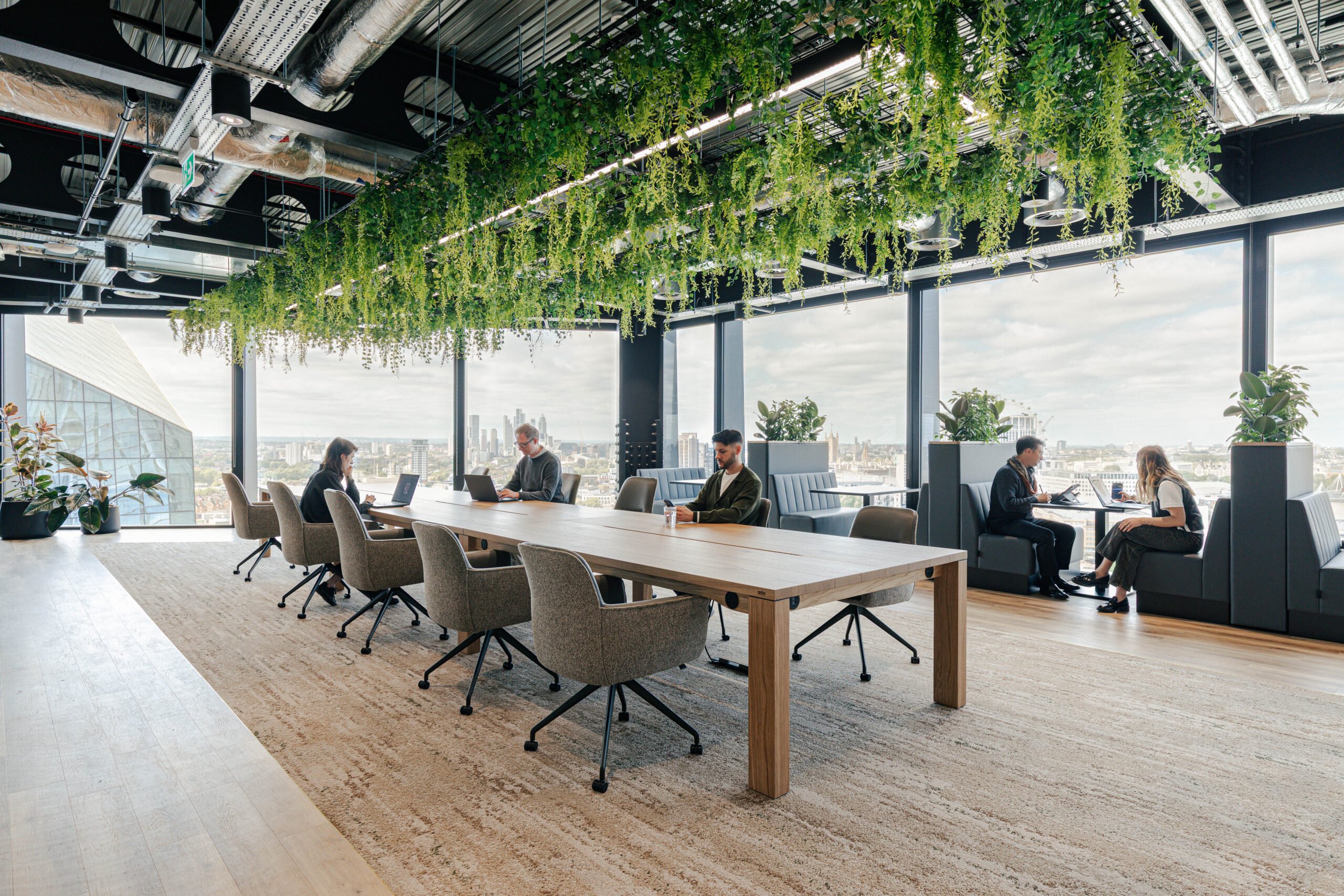 • Overhead planting creates bold visual statements while breaking down the scale of open-plan areas.